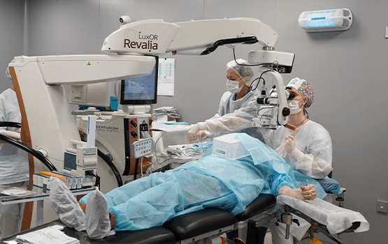 Операция по удалению мутного хрусталика проводится посредством воздействия ультразвуковой энергии аппарата Centurion с комбинированным, запатентованным американским раствором, удаляющим мутные массы хрусталика и последующей заменой на современный мягкий искусственный хрусталик, позволяющий провести операцию без боли и швов. Таким образом, благодаря инновационному оборудованию, установленному в нашем центре, операция катаракты проводится в максимально щадящем режиме для пациента.